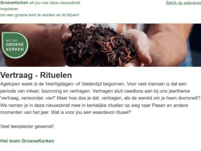 Agelopen week is de Veertigdagen- of Vastentijd begonnen. Voor veel mensen is dat een periode van inkeer, bezinning en vertragen. Vertragen sluit naadloos aan bij ons jaarthema ‘vertraag, verwonder, vier!’ Maar hoe doe je dat, vertragen, als de wereld om je heen doorsnelt? We nemen je in deze nieuwsbrief mee in kerkelijke rituelen op weg naar Pasen en andere momenten van het jaar. Wat is voor jou een waardevol ritueel?