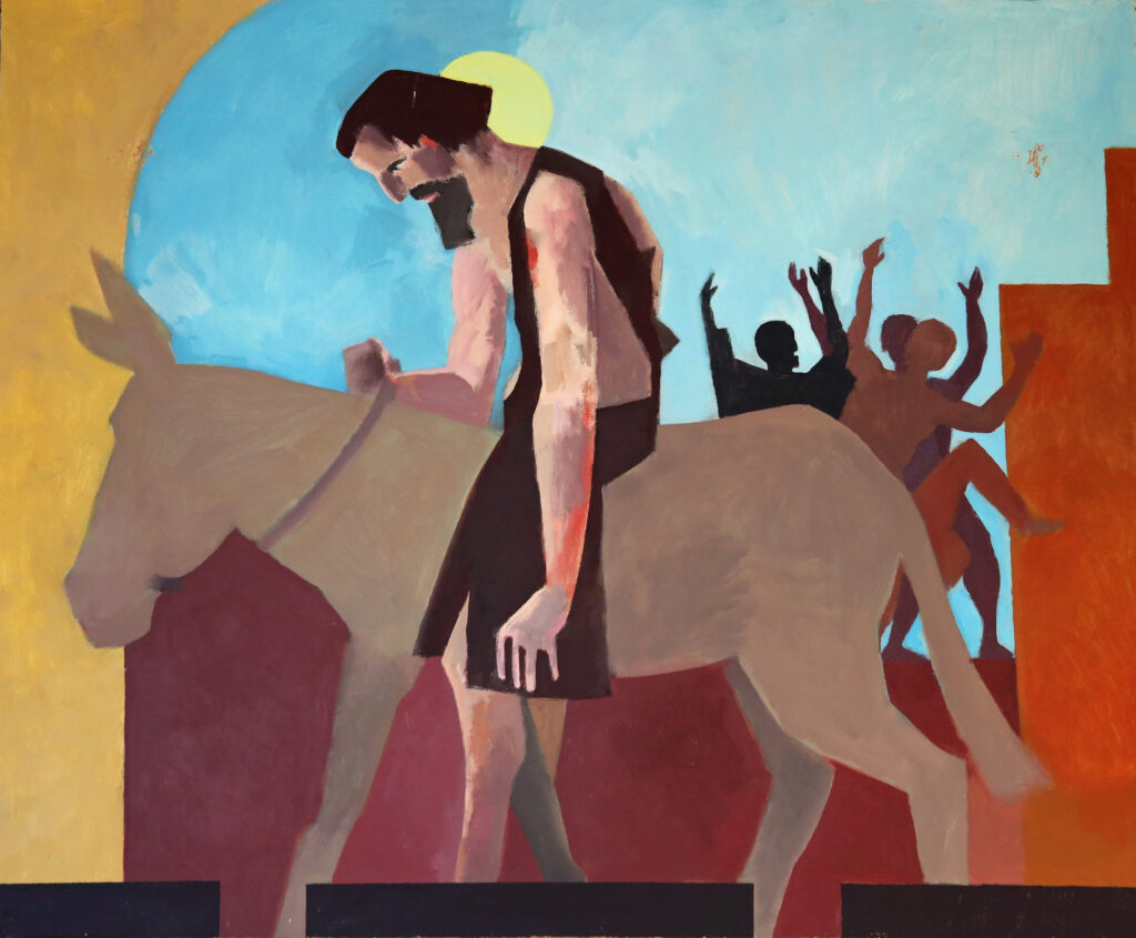Afbeelding 6. Over de ntocht in Jeruzalem: een vreemde koning op een ezel (Matth.21)