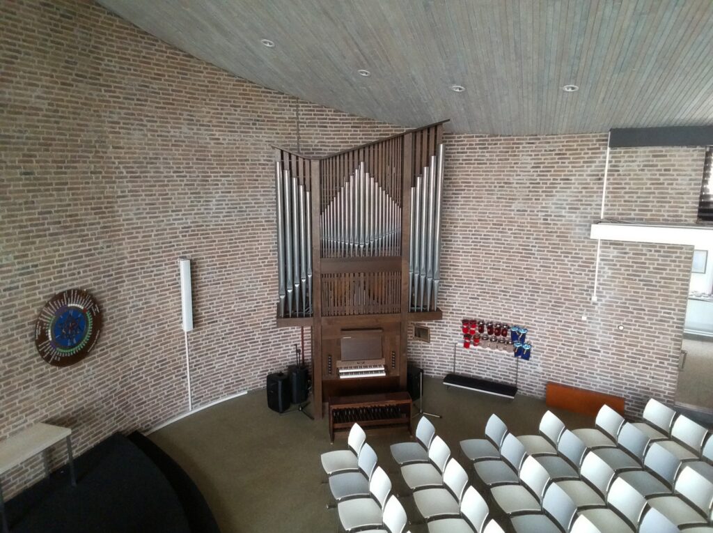 De Utrechtse firma van Vulpen bouwde in 1973 met Hans Erné als adviseur een nieuw mechanisch sleepladen-orgel voor Kerkelijk Centrum de Open Hof in de Flevowijk te Kampen.